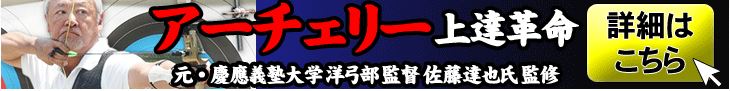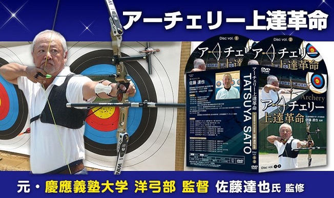 元・慶應義塾大学洋弓部監督 佐藤達也監修のアーチェリー上達革命DVDは、初心者からもっと上手くなりたい方まで、基本から実践で使えるテクニック、上達のコツが学べ、老若男女問わず全てのアーチェリー愛好家が実践できて、レベルアップ出来る内容になっています。